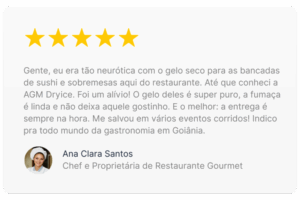 O calor de Goiânia não perdoa. Uma falha na cadeia do frio significa mercadoria perdida, dinheiro jogado fora e clientes insatisfeitos. Oferecemos gelo seco de alta qualidade que mantém a temperatura estável de -78,5°C por muito mais tempo, garantindo que seus produtos cheguem perfeitos ao destino.